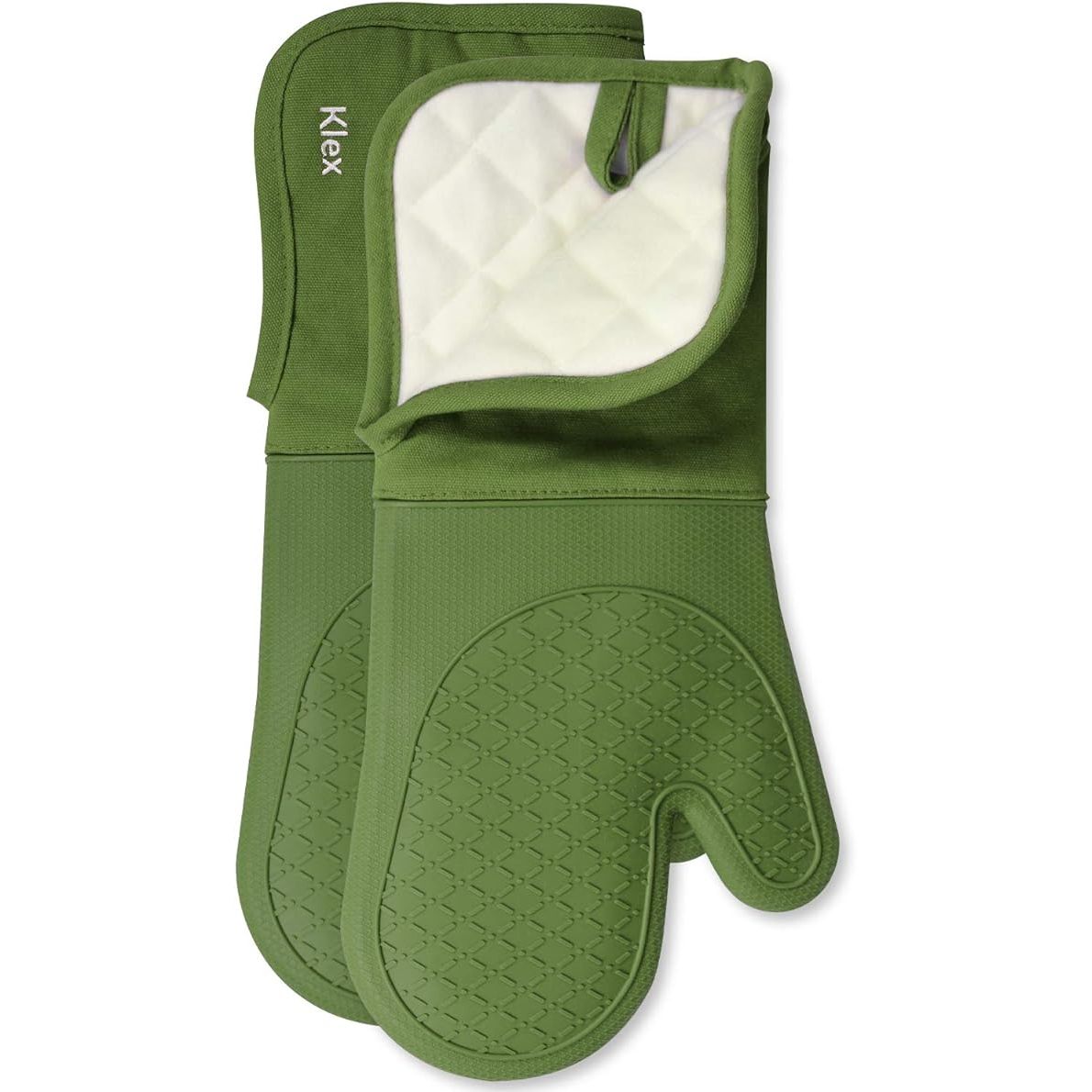 Constructed from durable and flexible silicone, this 2-piece set of green oven gloves is both non-slip and easy to clean. The waterproof barrier offered by the silicone material makes these mitts ideal for handling hot liquids and steam with confidence in the kitchen. Add a pop of color to your kitchen decor with the stylish green hue, which blends fashion with function in this essential cooking accessory. Whether you're grilling, baking, or cooking on the stovetop, these oven mitts are a versatile tool that ensures your safety and comfort during meal preparation. Description by ChatGPT.
