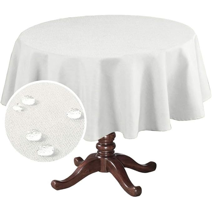 H.VERSAILTEX Linen Textured Table Cloths Round 60 Inch Premium Solid Tablecloth Spill-Proof Waterproof Table Cover for Dining Buffet Feature Extra Soft and Thick Fabric Wrinkle Free, Ivory