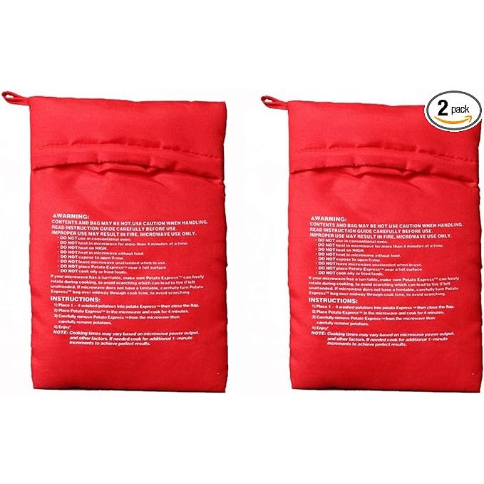 Microwave Potato Pouch, Pack of 2 Potato Cooker Bags, Red