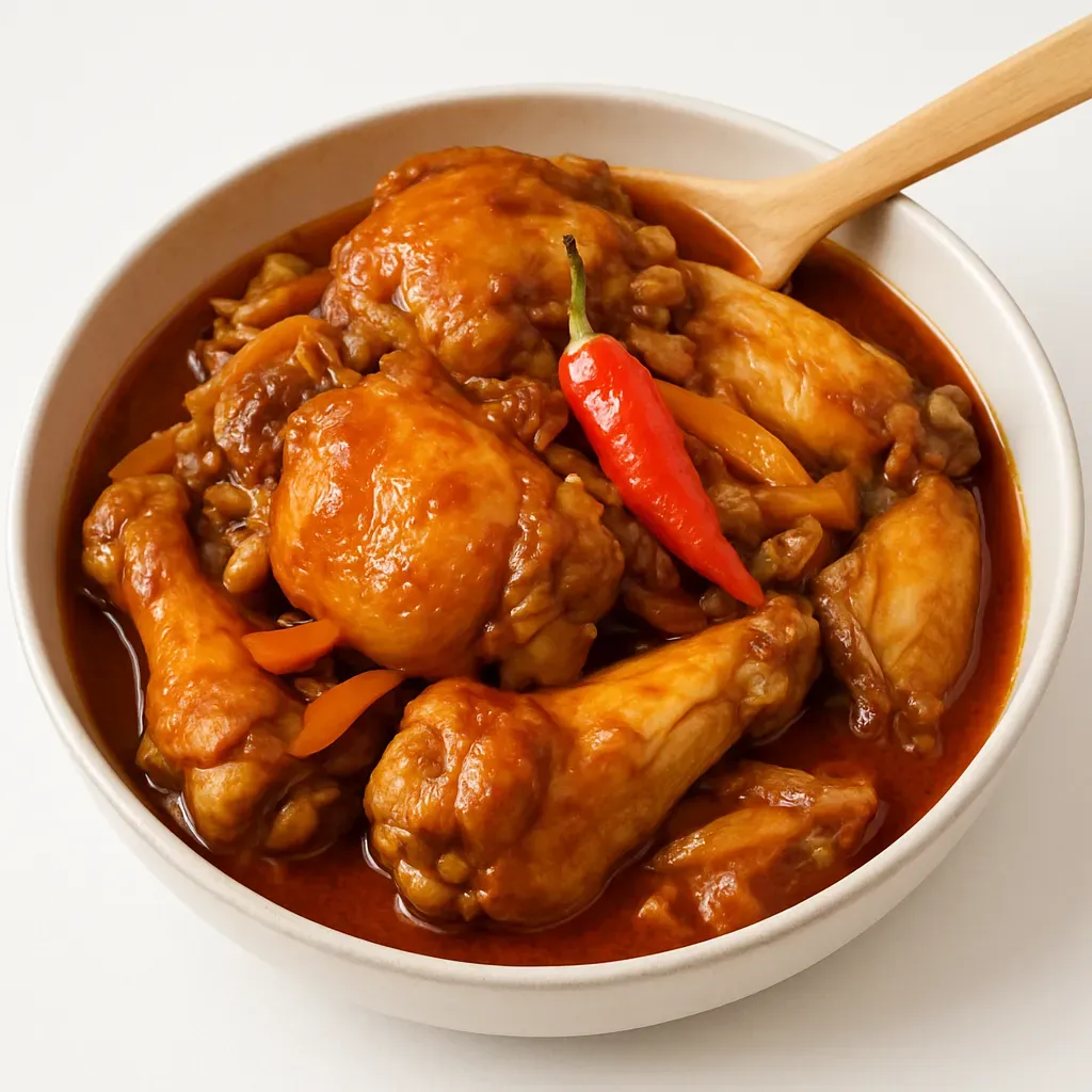 - Add water, cover with a lid, and stew on medium heat for 30 minutes to 1 hour until the chicken is tender.