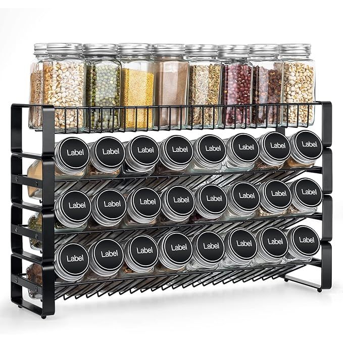 Elevate your culinary space with the sleek JONYJ 4 Tier Stackable Seasoning Rack Organizer—a perfect blend of style and function for any modern kitchen. Expertly crafted to accommodate the bustling needs of cooking enthusiasts, this organizer boasts four stackable shelves, ingeniously designed to utilize vertical space, effectively decluttering countertops and cabinets. Its robust black frosted iron construction not only enhances kitchen aesthetics but also ensures durability, providing a chic, space-efficient solution for stowing all your essential spices and seasonings.