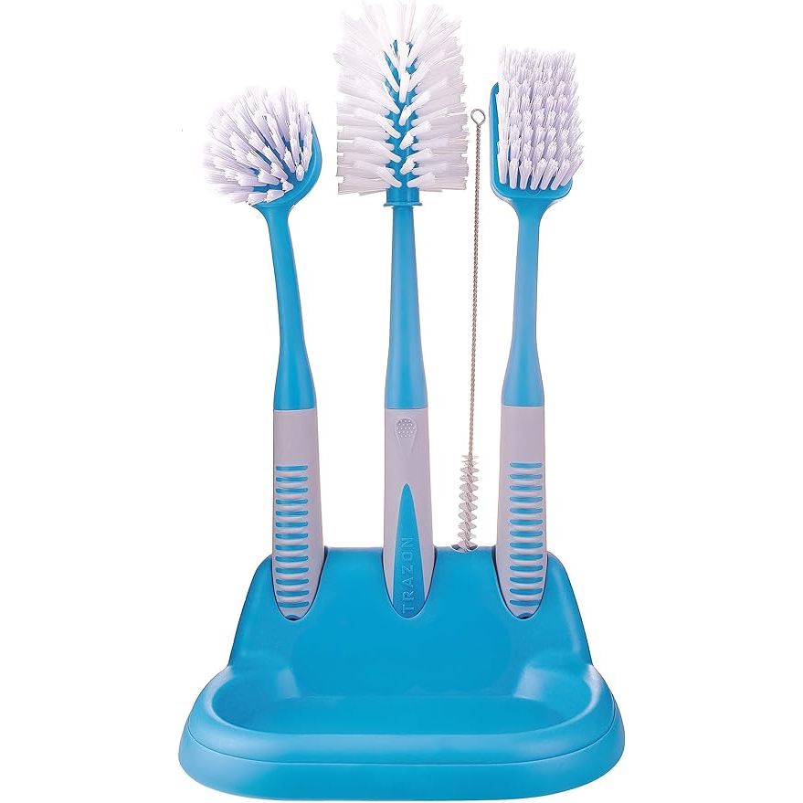Trazon Kitchen Cleaning Brush Set - 5 Pieces with Holder