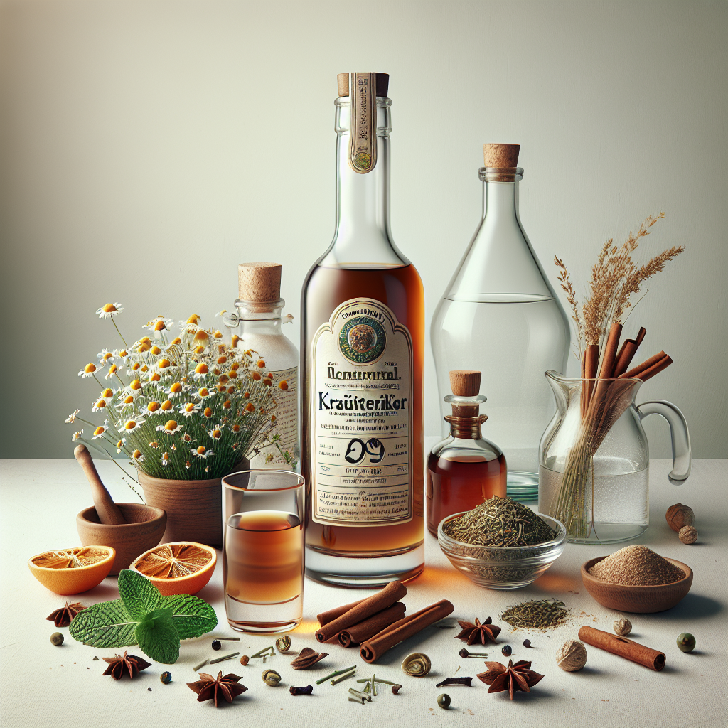 Kräuterlikör is a traditional German herbal liqueur noted for its complex and aromatic blend of botanicals. This digestif is crafted with a variety of herbs, spices, and citrus peels, which are steeped in alcohol before being sweetened and aged to perfection. The precise recipe of Kräuterlikör is often a closely guarded secret, with many variants each having their unique blend of ingredients. This homemade version is an approximation, emphasizing common herbs like anise, peppermint, and chamomile, alongside warming spices like cinnamon and cloves. The liqueur is characteristically rich, earthy, and slightly sweet, typically enjoyed neat or with ice as an after-dinner drink to aid digestion.