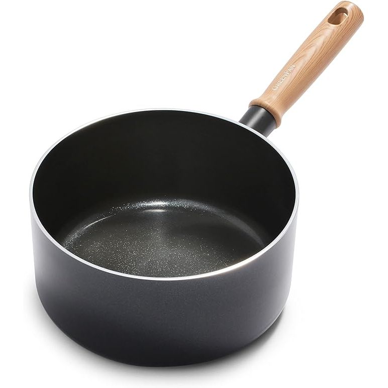 Hudson Ceramic Nonstick Saucepan, 1.75QT, Wood Handle, PFAS-Free, Dishwasher Safe, Black