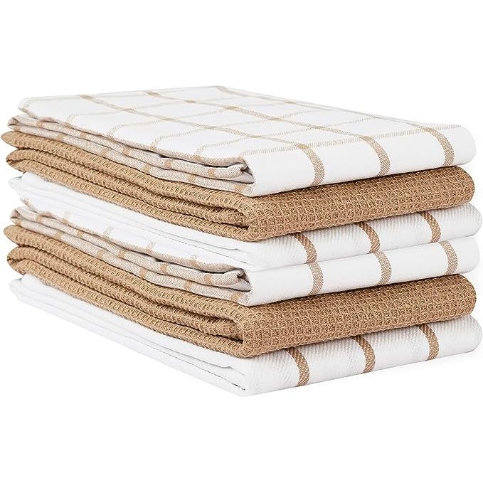 LINEN Kitchen Towels Set - Pack of 6 Cotton Dish Towels for Drying Dishes, 18”x 28”, Kitchen Hand Towels, Tea Towels, Premium Dish Towels for Kitchen, Quick Drying Kitchen Towel Set - Beige