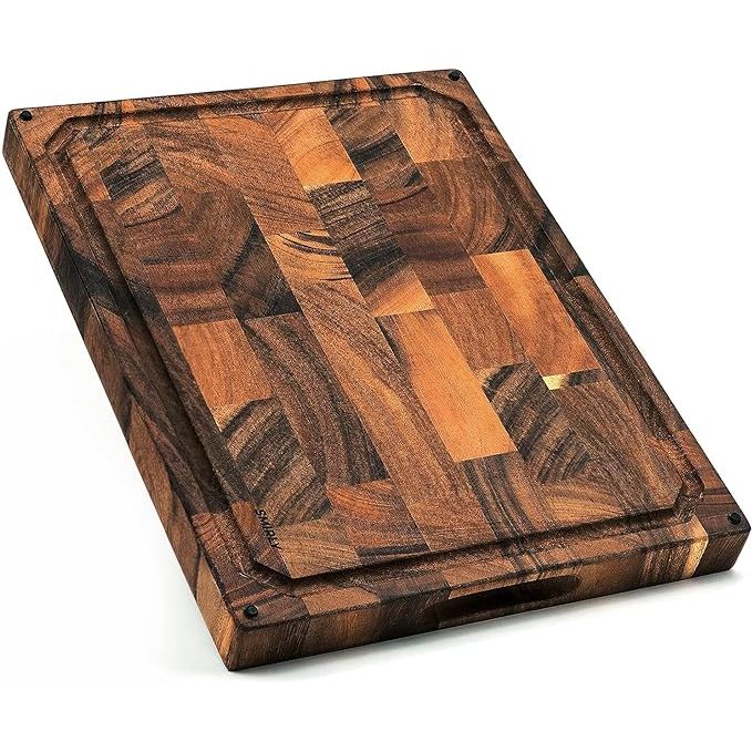 Crafted from high-quality walnut wood, the SMIRLY Butcher Block is a top-notch end grain cutting board designed for kitchen enthusiasts and professional chefs. Its large surface area allows for effortless cutting, chopping, and ingredient preparation while protecting knives from dulling with its durable end grain construction. Easy to clean and maintain, this cutting board is naturally resistant to bacteria and odors, ensuring a hygienic food prep experience for every use.