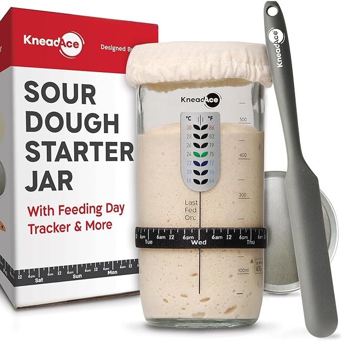 Developed by an industrial designer with a passion for baking, the KneadAce Sourdough Starter Jar Set marries functionality with style. Upgrade to this efficient and attractive kit today and give your starter dough the perfect home it deserves. With the KneadAce Sourdough Kit, your satisfaction is guaranteed as you embark on your sourdough baking journey. Description by ChatGPT.