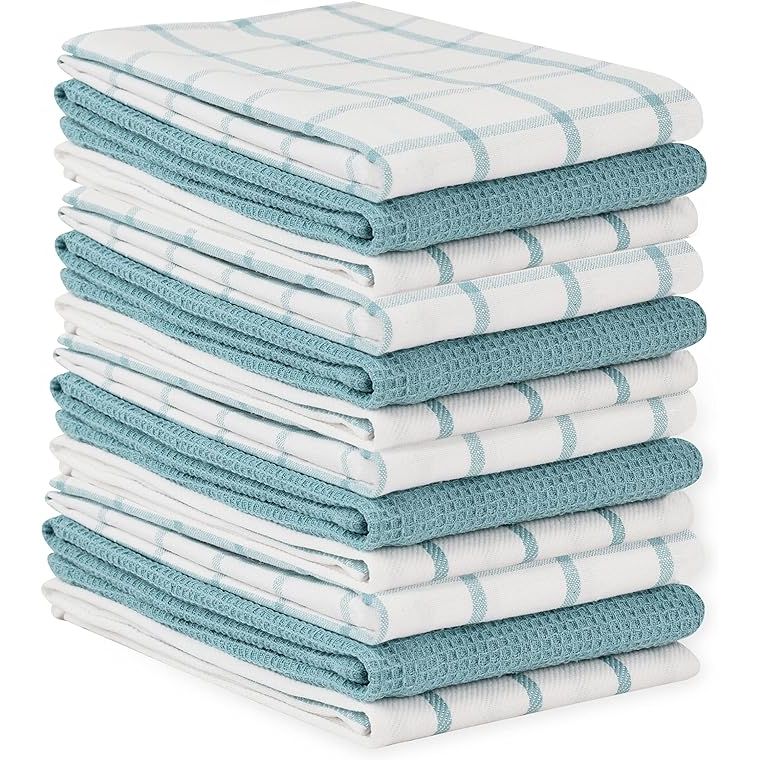 Cotton Kitchen Towels and Dishcloths Set - 12 Pack of Dish Cloths, 18”x 28”, Soft Hand Towels for Kitchen, Absorbent Tea Towels, Premium Kitchen Towels, Quick Drying Cleaning Towels - Aqua Towels