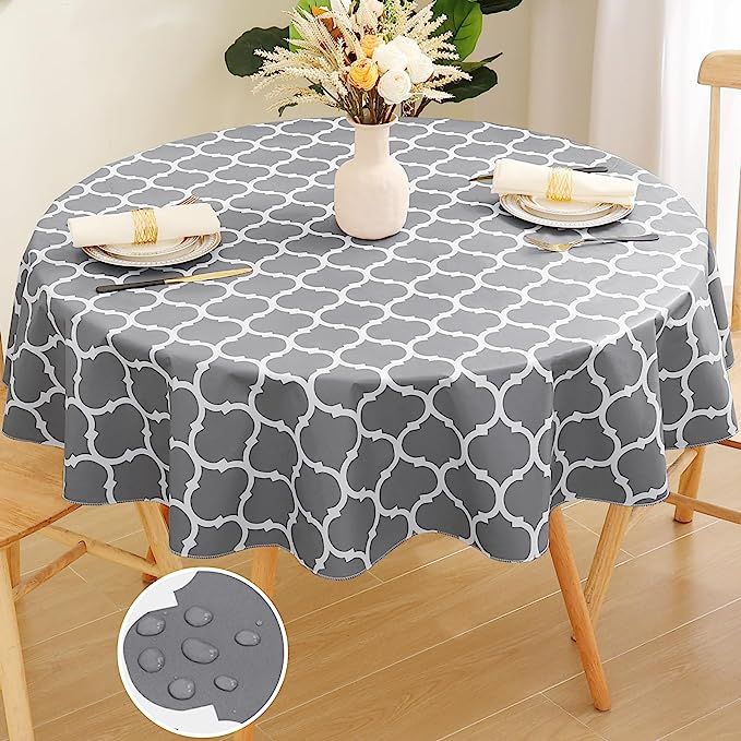 smiry Round Plastic Table Cloth, Waterproof Vinyl Tablecloth with Flannel Backing for Round Tables, Wipeable & Spillproof for Dining, Camping, Indoor and Outdoor (60" Round, Grey)