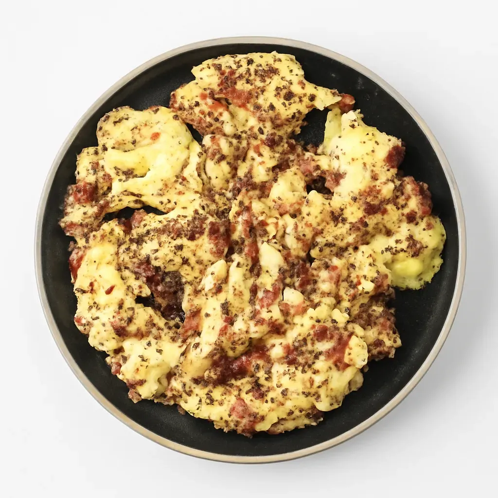 - Allow the edges of the eggs to set slightly, then gently scramble the mixture using a spatula until fully cooked.