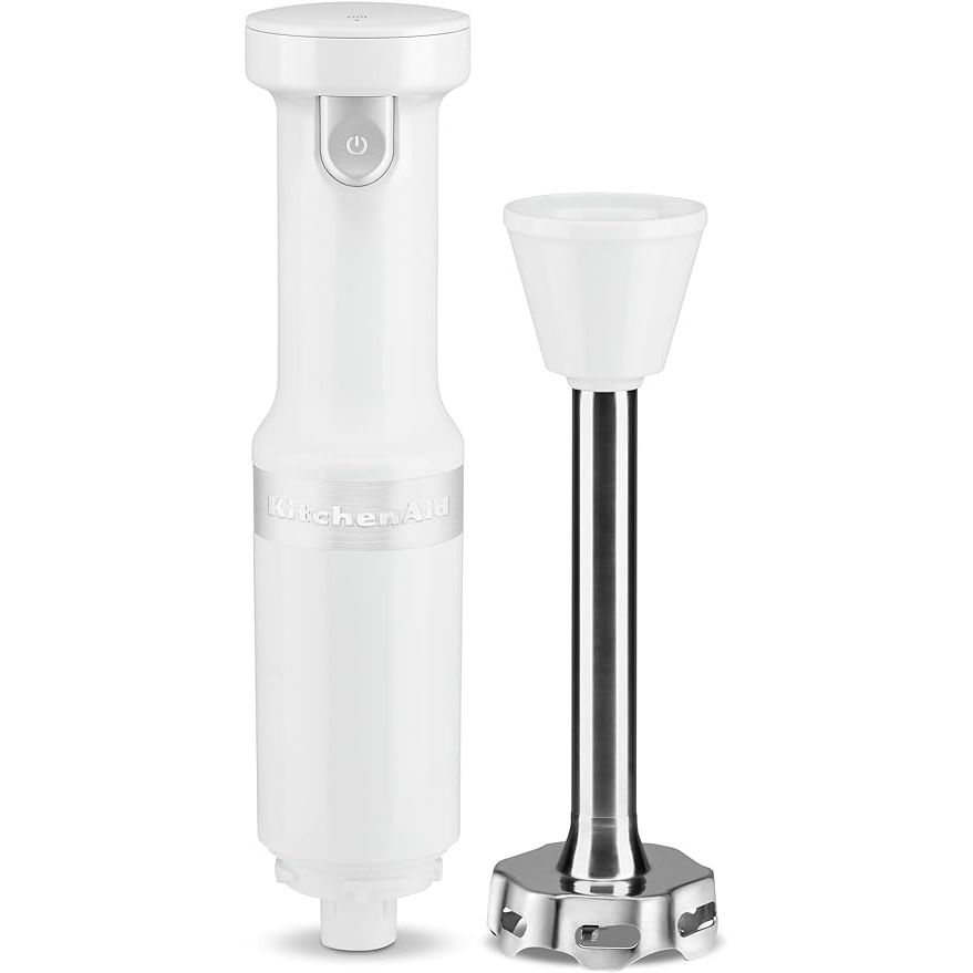 Designed with a comfortable ergonomic grip and a sleek white finish, the KitchenAid Cordless Variable Speed Hand Blender - KHBBV53 is a stylish and efficient addition to any kitchen. Whether you're a professional chef or a home cook, this hand blender is sure to meet all your blending needs with ease.