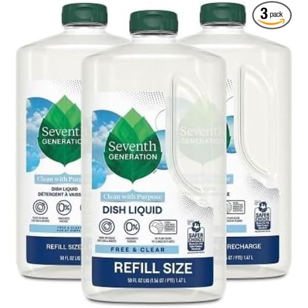 Revitalize your dishwashing routine with the eco-conscious Seventh Generation Hand Dish Wash Refill in Free & Clear. This trio pack includes three substantial 50-ounce bottles brimming with a powerhouse plant-based formula that is meticulously crafted without the use of any dyes or synthetic fragrances. Dive into a guilt-free cleaning experience that delivers impeccably clean dishes while staying kind to your skin and our precious planet.