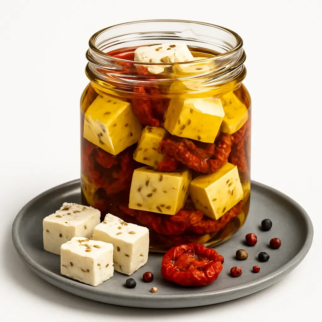 Transform ordinary feta cheese into a gourmet snack with this Mediterranean-inspired recipe. Marinated in a symphony of spices and rich olive oil, this dish matures into a palate-pleasing appetizer perfect for any occasion.