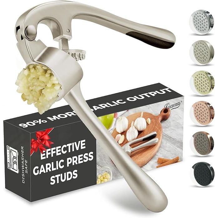 Upgrade your kitchen arsenal with the Kitessensu High Effective Garlic Press with Studs and say goodbye to laborious garlic-mincing tasks. Simplify your cooking routine with this durable and user-friendly garlic press that is perfect for anyone who enjoys using fresh garlic in their recipes. Make meal prep a breeze with this efficient kitchen gadget that will quickly become a staple in your kitchen. Description by ChatGPT.