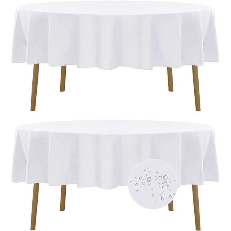 2 Pack Waterproof Round Tablecloth, 70 Inch, Stain Resistant and Wrinkle Polyester Table Cloth, Fabric Table Cover for Kitchen Dining, Wedding, Party, Holiday Dinner-White