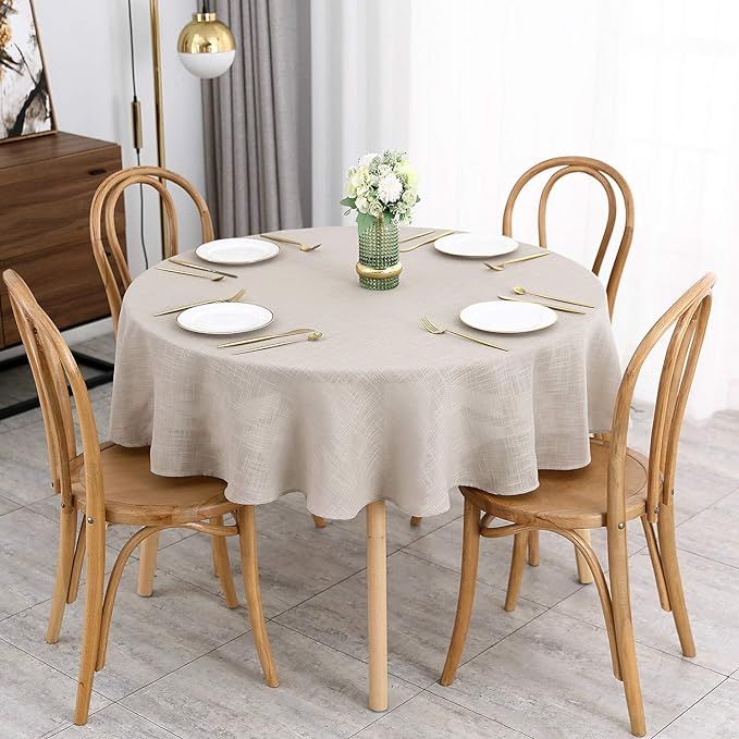 maxmill Lux Faux Linen Tablecloth with Slubby Texture Wrinkle Resistant Anti-Shrink Soft Table Cloth for Kitchen Dining Restaurant Tabletop for Event Holiday Dinner Round 70 Inch Natural