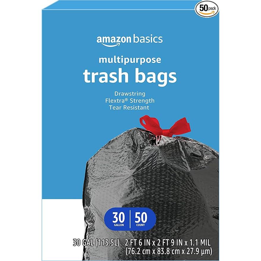 Amazon Basics Flextra 30-Gallon Unscented Drawstring Trash Bags - 50-Pack