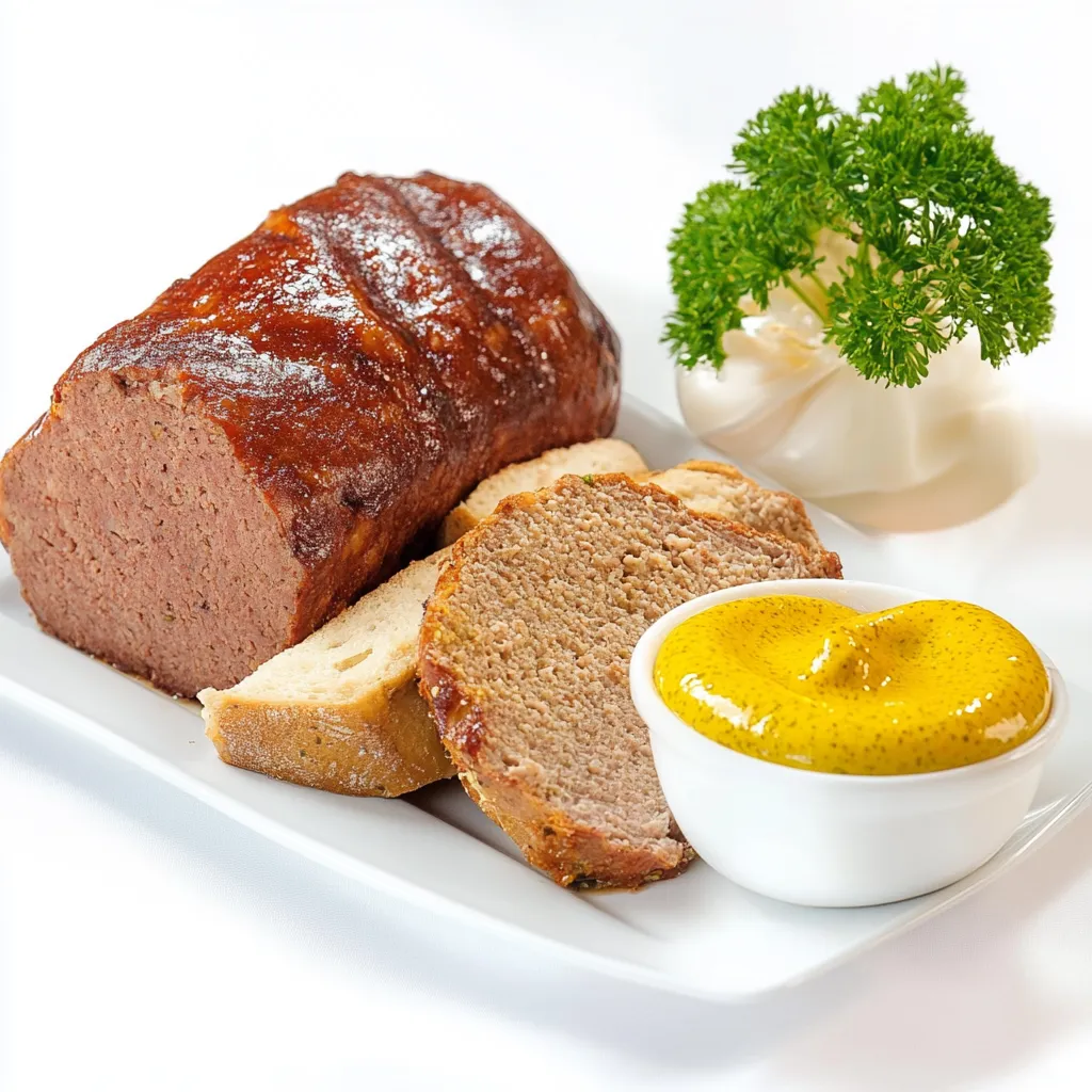 Leberkäse: Bavarian meatloaf served warm with mustard and bread