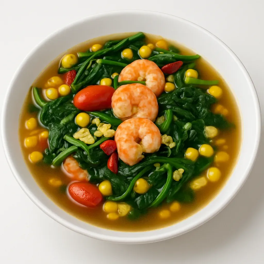 A heartwarming soup that combines the wholesome flavors of corn, spinach, and shrimp, perfect for comforting any time of the year.