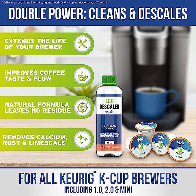 The heart of this kit lies in its powerful descaling solution and four cleaning capsules, carefully formulated to eliminate mineral buildup and rust within your machine. By using the Caffenu kit, you can enjoy consistently delicious cups of coffee while extending the lifespan of your Keurig.