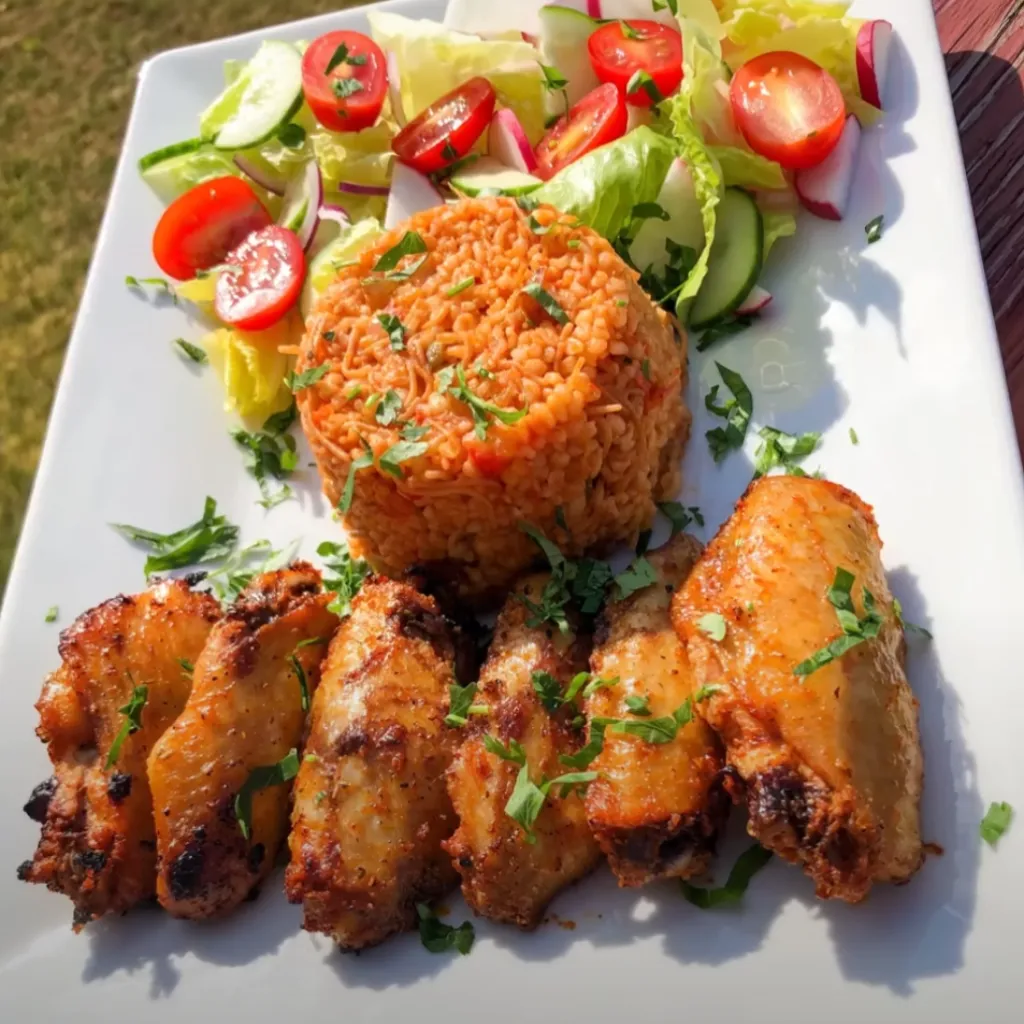 This delicious recipe gives a flavorful twist to your regular chicken wings, pairing them with a hearty red bulgur pilaf. Infused with a medley of spices and grilled to perfection, these wings are complemented by a savory, aromatic bulgur dish, perfect for a satisfying Kurd-inspired meal.