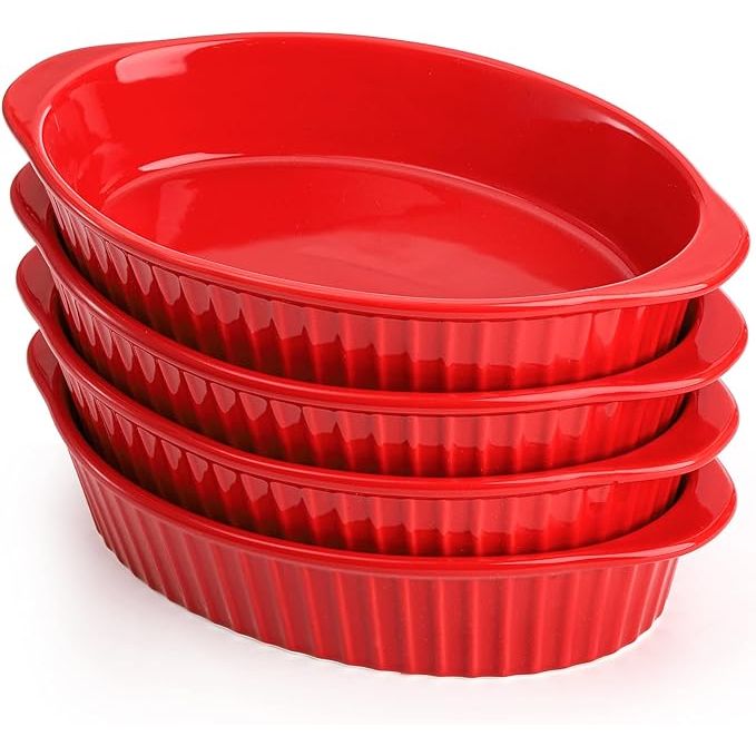 Measuring at 8.7 x 5.3 x 1.7 inches, these oval baking dishes are an ideal size for a variety of dishes, from lasagna to crème brulee. Featuring convenient double handles, transporting these dishes from the oven to the table is a breeze. Dishwasher safe for easy cleanup, these dishes are both stylish and practical for any kitchen setting.