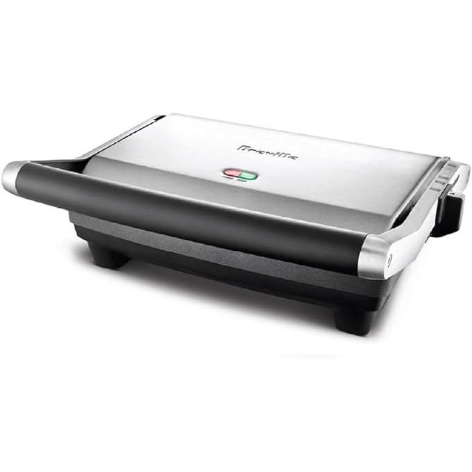 Equipped with a floating hinge and adjustable height control, this panini press accommodates sandwiches of various thicknesses for even pressure and uniform toasting. The indicator lights keep you informed of the cooking progress, ensuring your sandwiches are grilled to perfection. Whether you're melting cheese, grilling veggies, or experimenting with different ingredients, the Breville Duo Panini Press offers a convenient and efficient solution for enjoying delectable, restaurant-quality paninis in the comfort of your own home. Elevate your sandwich game with this high-quality kitchen essential. Description by ChatGPT.
