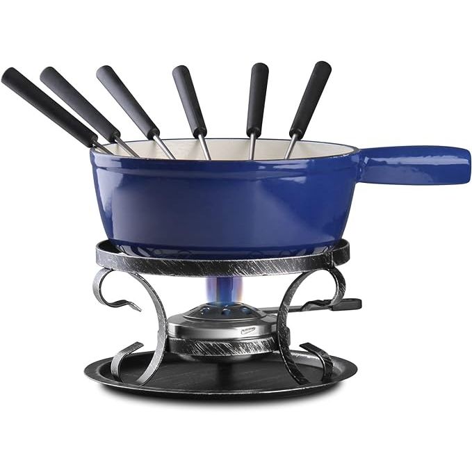 Swiss Iron Fondue Pot Set, Fondue Set for Cheese, Meat & Chocolate (Blue)