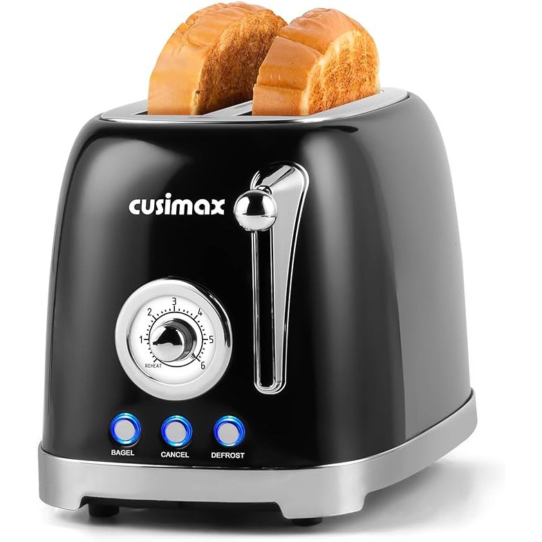 Upgrade your kitchen with the stylish and functional CUSIMAX 2-slice toaster, blending a retro design with modern durability. Perfect for gifting during special occasions like Christmas, Thanksgiving, birthdays, housewarmings, or weddings, its lightweight build ensures easy portability for any setting. Enjoy the convenience of 6 browning options that cater to your toast preferences, from a light warmth to a crispy crunch.
