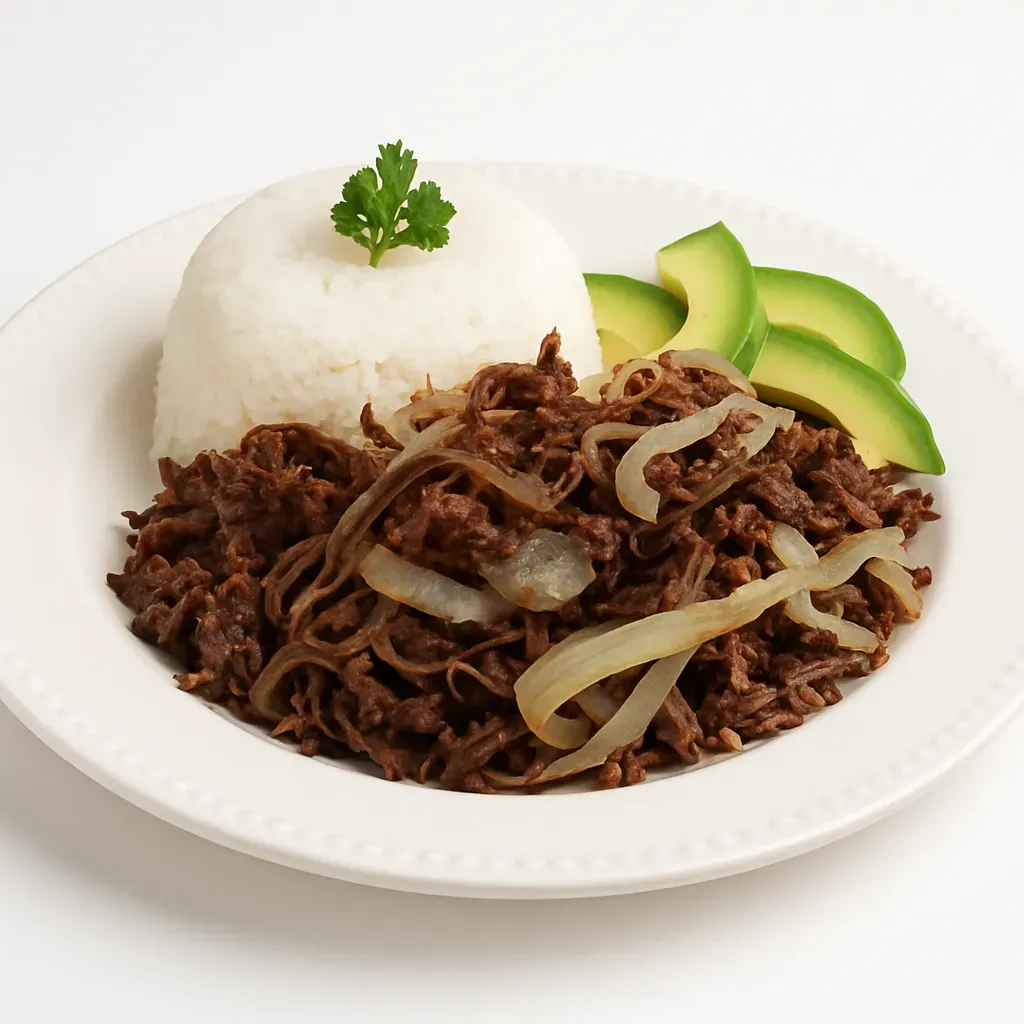 - Serve hot with white rice, sliced avocado, and a sprig of parsley for garnish.